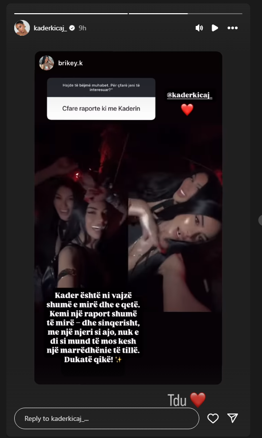 E mikja e Xhenetës, Brikey, ka hapur një pyetësor në Instagram ku është pyetur për raportin me Kaderin.