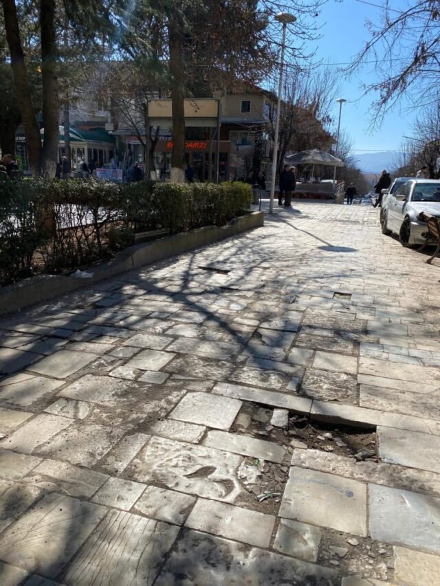 Dali Ndoka zgjedh me kujdes, ku ta hedhë këmbën mes pllakave të thyera të bulevardit të ri të qytetit të Peshkopisë. Dikur i shtruar me asfalt, pllakat, që veshën shëtitoren kryesore, “Elez Isufi”, në vitin 2016, u kthyen në një shqetësim për banorët e kësaj zone. Sidomos gjatë stinës së dimrit, si pasojë e ngricave, pllakat e gurit përbënin rrezik për ata që ishin në moshë.
