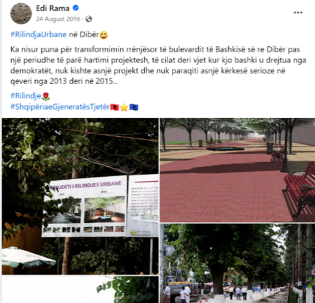 Në vitin 2016 projektin për transformimin e bulevardit kryesor të Peshkopisë, kryeministri, Edi Rama, e përdori për të sulmuar kundërshtarët e tij, politikë, duke e cilësuar një sukses të socialistëve. Në postimin e shpërndarë në Facebookasokohe Rama publikoi edhe pamje të projektit, por zbatimi në terren nuk përputhej me projektin fillestar.