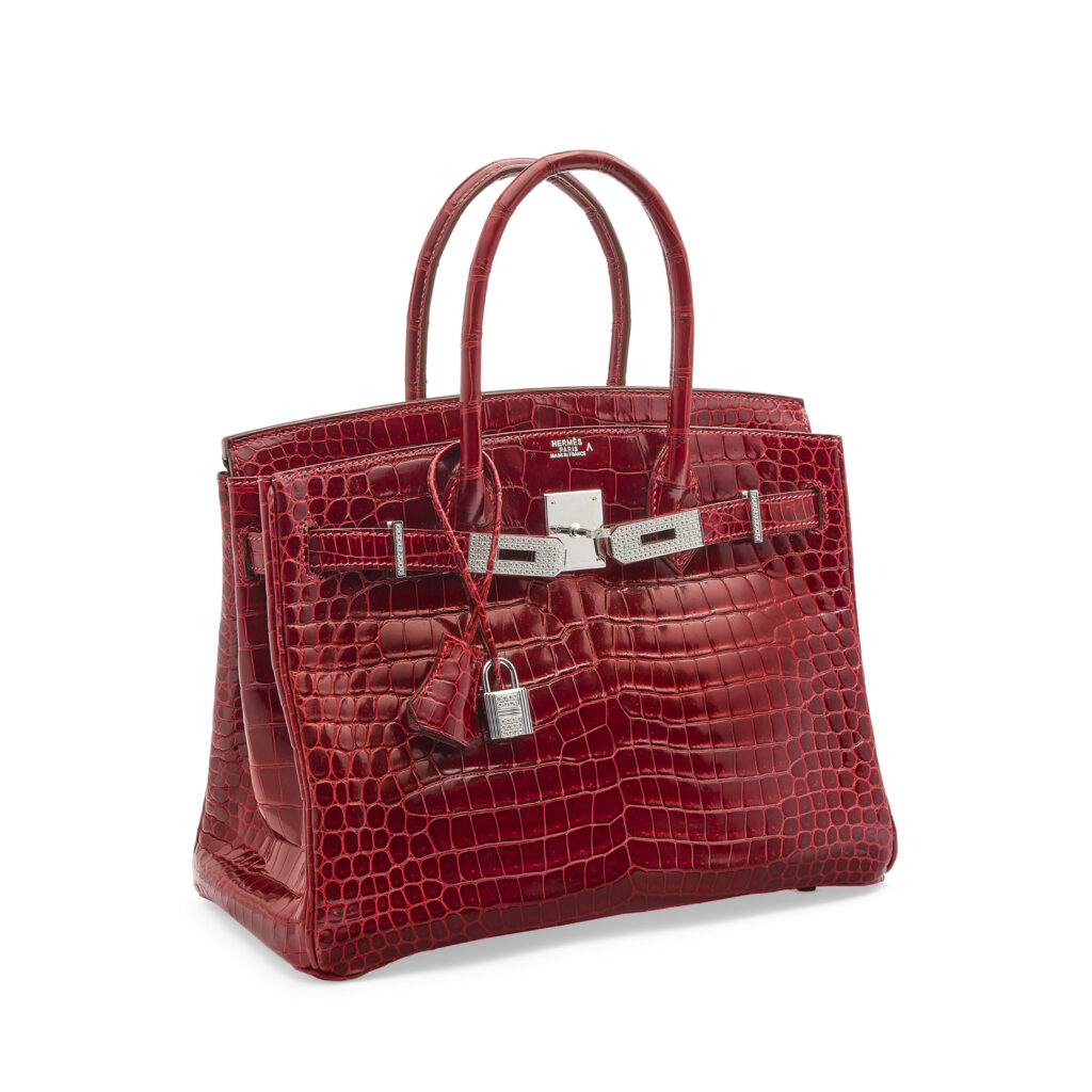 9. Hermès Exceptional Collection Shiny Rouge H Porosus Crocodile 30 cm Birkin Bag—$203,150