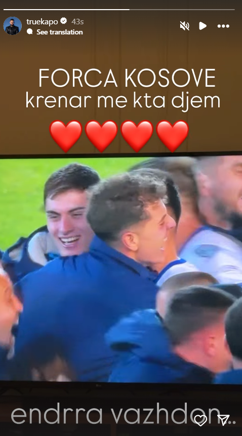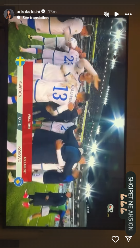 Dyshja shihet se kanë ndjekur së bashku ndeshjen, në Instagram ata postuan foto duke shikuar duelin nga televizori, ku shihet se muri i ka ”tradhtuar” dhe ka zbuluar se çifti ishin bashkë mbrëmë. /IndeksOnline/