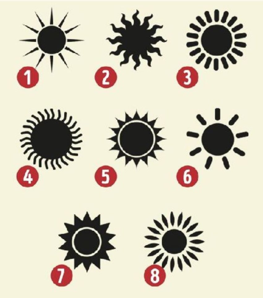 LifeStyle Test psikologjik/ Zgjidhni njĂ« diell dhe zbuloni anĂ«t e fshehta tĂ« karakterit tuaj đ 08.07.2024 đ 0