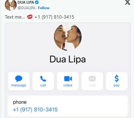ShowBizzz Dua Lipa âçmendâ rrjetin, publikon numrin e telefonit: MĂ« shkruani! đ 07.12.2023 đ 2