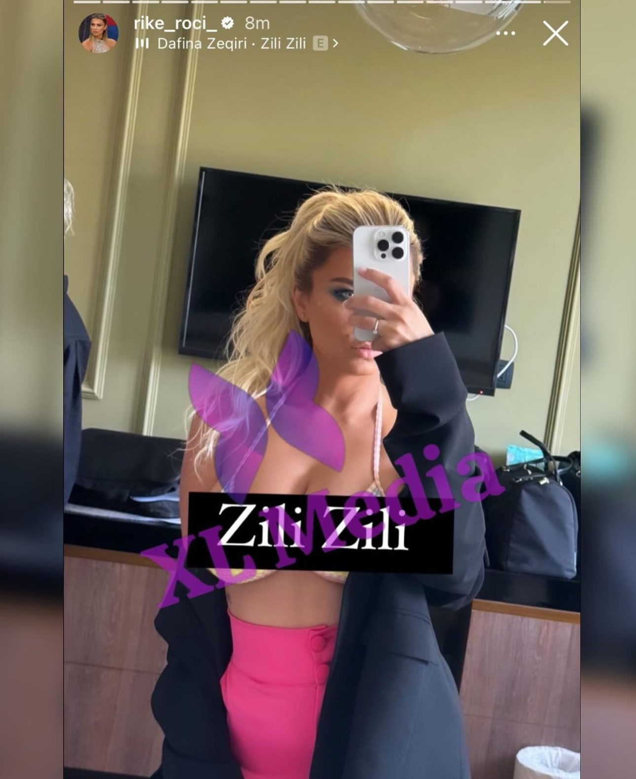 Nga ana tjeter, Rike ka bërë një postim të papritur në Instastory, me një foto nga prapaskenat e spotit ku shkruan “Zili Zili”, që duket si një përgjigje ndaj ish banores së BBV2.