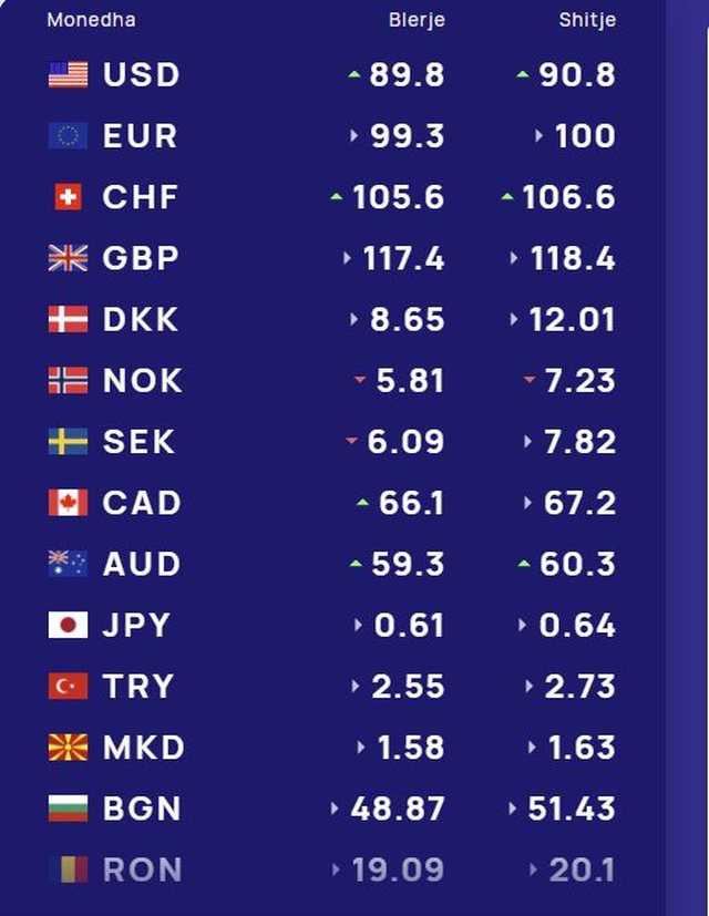 Më poshtë, po sjellim të dhënat e këmbimin valutor, për të gjitha monedhat e huaja: