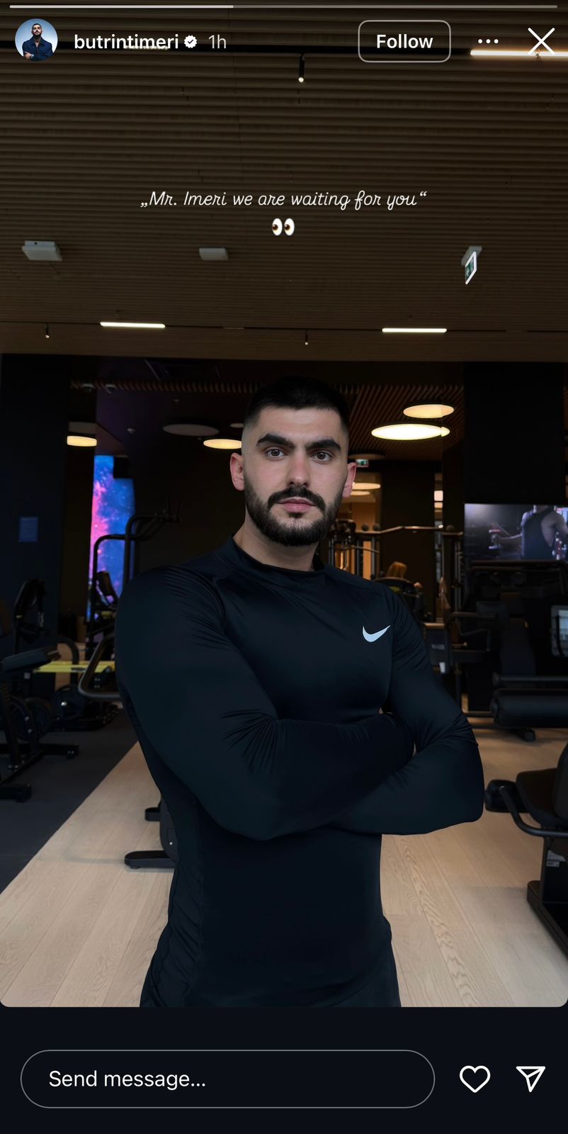 Në foto, ai shfaqet i qetë dhe karizmatik si gjithmonë, por ajo që bie në sy është mbishkrimi intrigues: “Mr. Imeri, we are waiting for you” — ose në shqip, “Z. Imeri, ne jemi duke pritur për ty.”