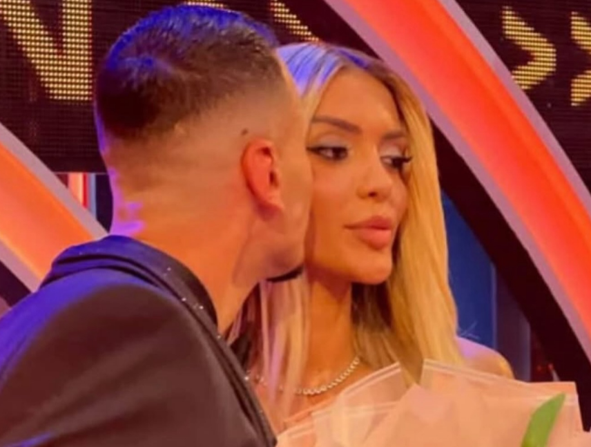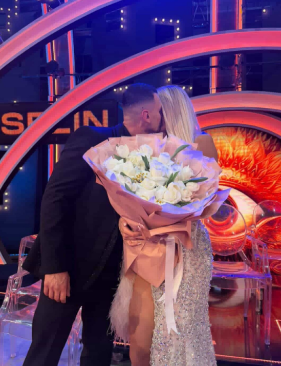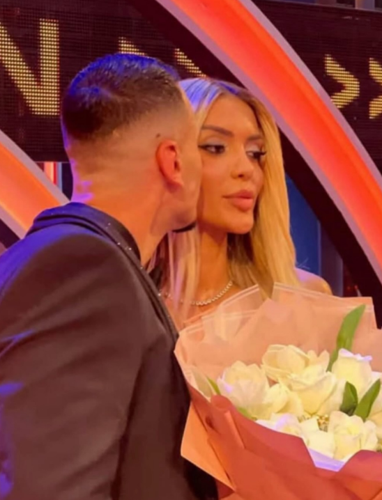 Në disa imazh e publikuara shihen Mateo dhe Brikena duke u puthur, derisa bukuroshja mban në duar një buqetë të madhe me lule të dhuruara nga Mateo.