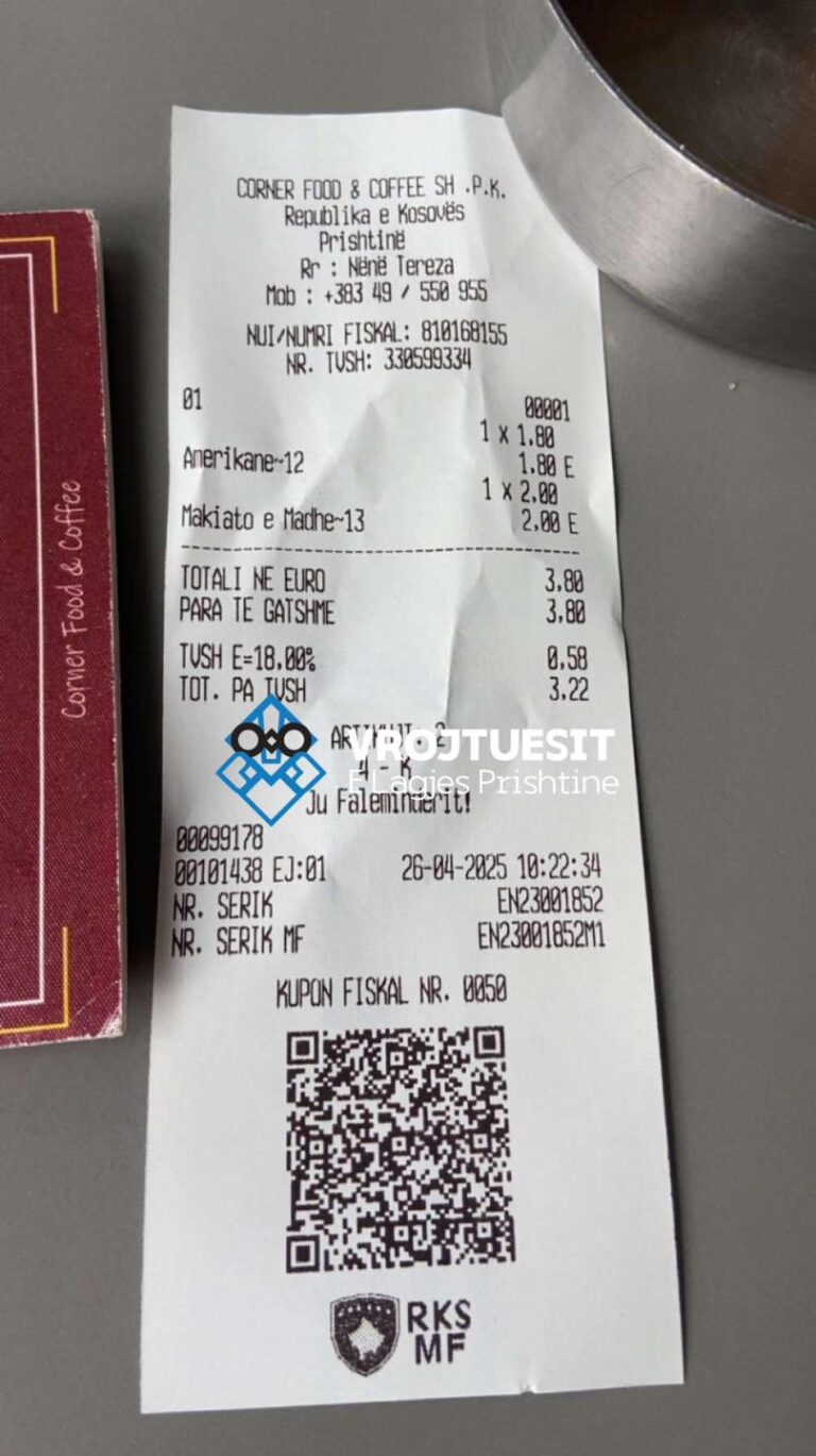 Një prej rasteve më të fundit është publikuar në faqen “Vrojtuesit e lagjes”, ku tregohet një kupon fiskal nga një lokal në sheshin “Nëna Tereza”, ku një macchiato e madhe është faturuar me 2 euro, ndërsa një kafe amerikane me 1.80 euro.