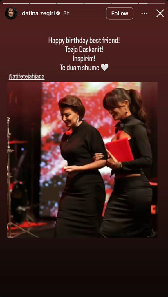 “Urime ditëlindjen shoqja e ngushtë. Tezja e Daskanit! Inspirim! Të duam shumë”, thuhet në mesazhin e urimit të Dafinës kushtuar ish-presidentes.