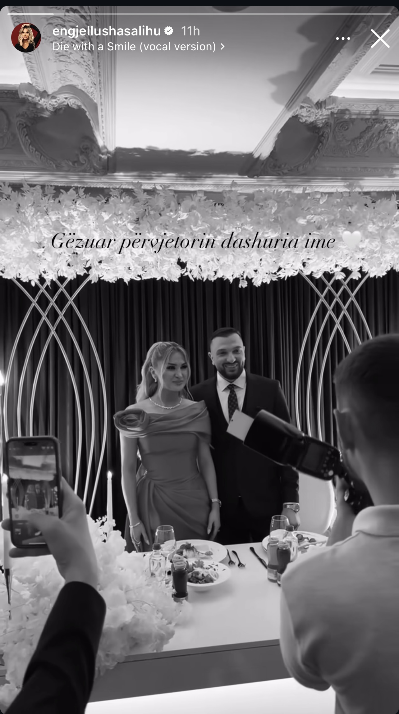 Në një fotografi të publikuar në rrjete sociale, të ndarë nga fejesa e tyre, Engjëllusha ka shkruar: