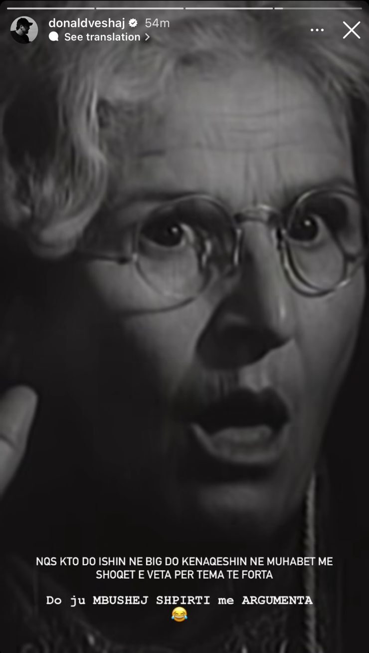 Sa i përket kësaj ngjarje, ka reaguar së fundmi Donald Veshaj, i cili në një postim në InstaStory ka ironizuar Erjolën dhe Dean për ‘argumentat’ e tyre.