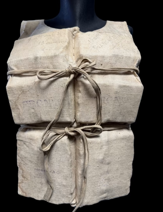 Jeleku ngjyrë bezhë, i nënshkruar nga Francatelli dhe të tjerë të shpëtuar, përmban xhepa të mbushur me tapë dhe është pjesë e një koleksioni më të gjerë objektesh historike nga Titaniku dhe kompania White Star Line që do të dalin në ankand këtë fundjavë.