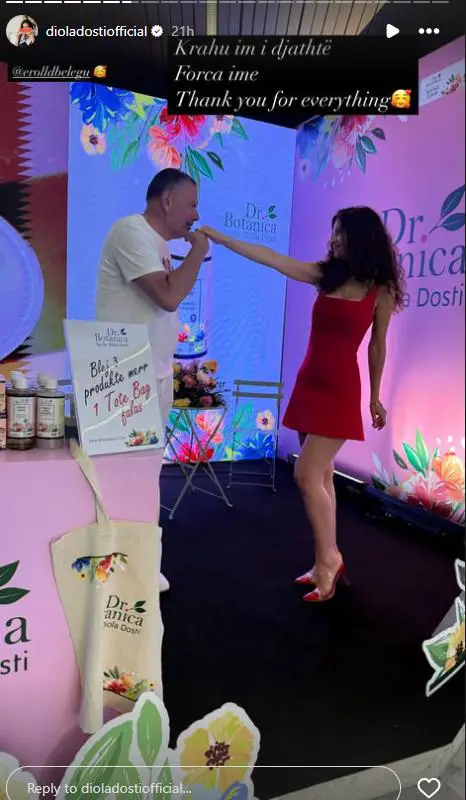 Nutricionistja Diola Dosti orë me parë ka ndarë një postim të veçantë ku shihet pranë bashkëshortit, Erolld Belegu