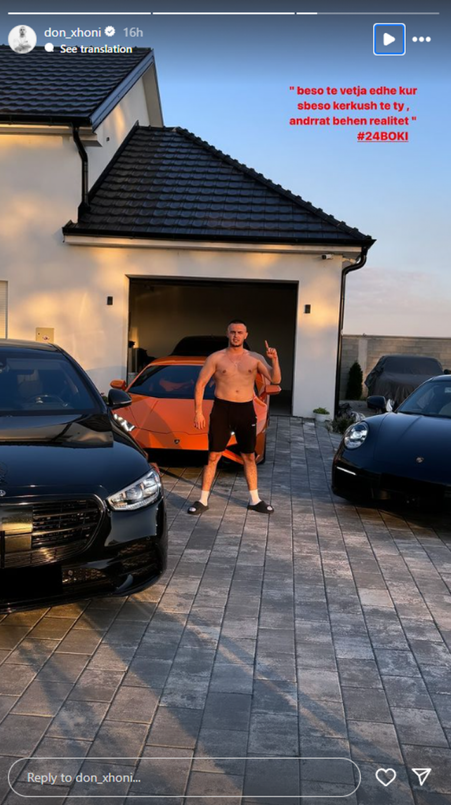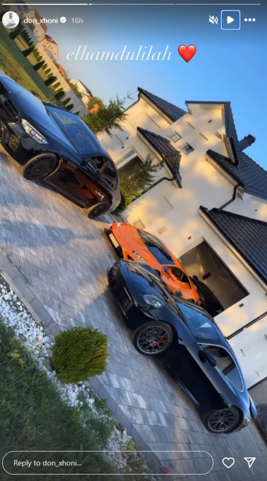 Në videon e publikuar nga oborri i shtëpisë shihen tri vetura të nivelit të lartë. Ai gjithmonë e ka shprehur pasionin e tij për makinat luksoze, siç duket reperi ja ka arritur qëllimit.