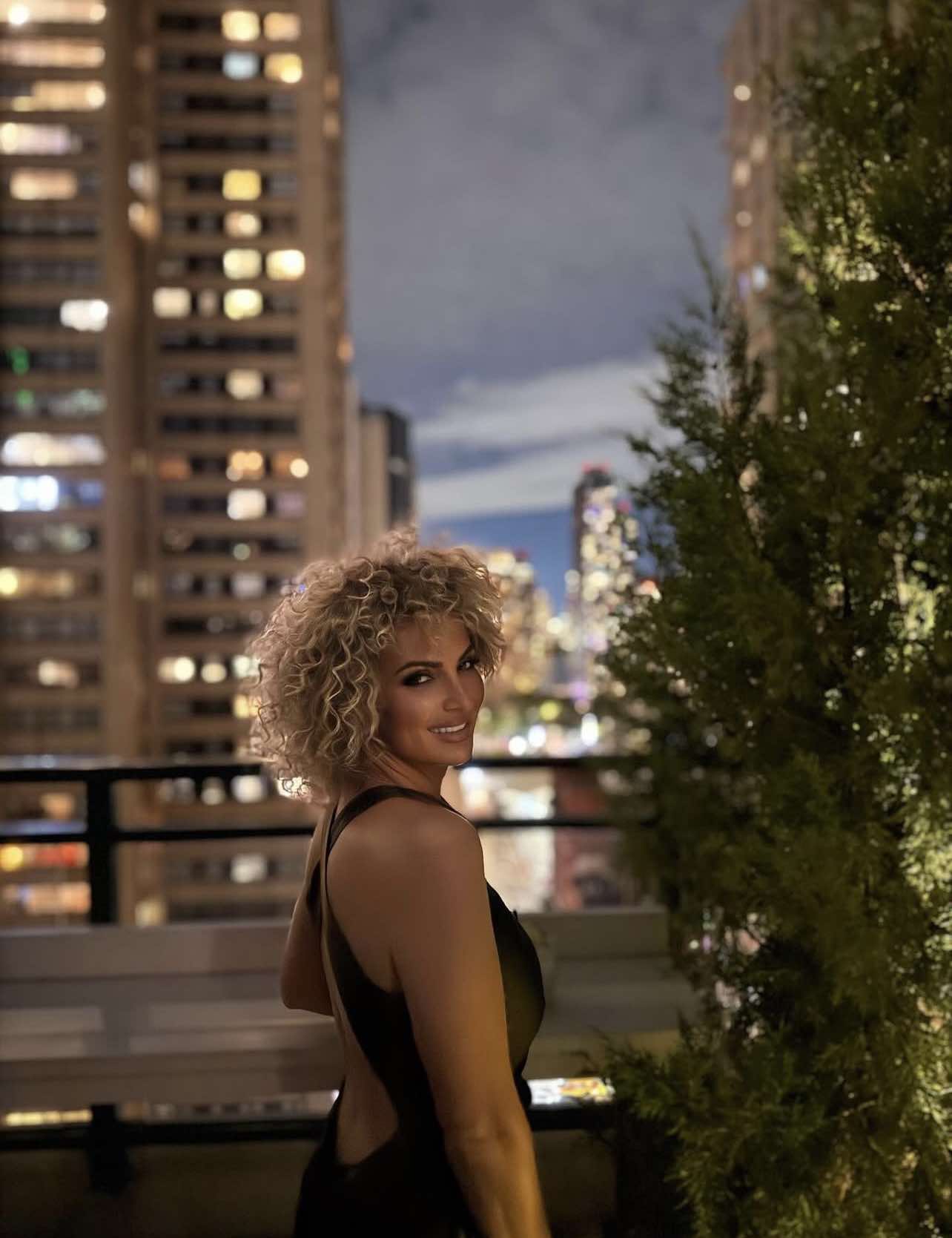 Ajo është shfaqur me një fustan elegant të zi, që i zbulonte shpinën, duke reflektuar elegancë dhe siguri në vete.
