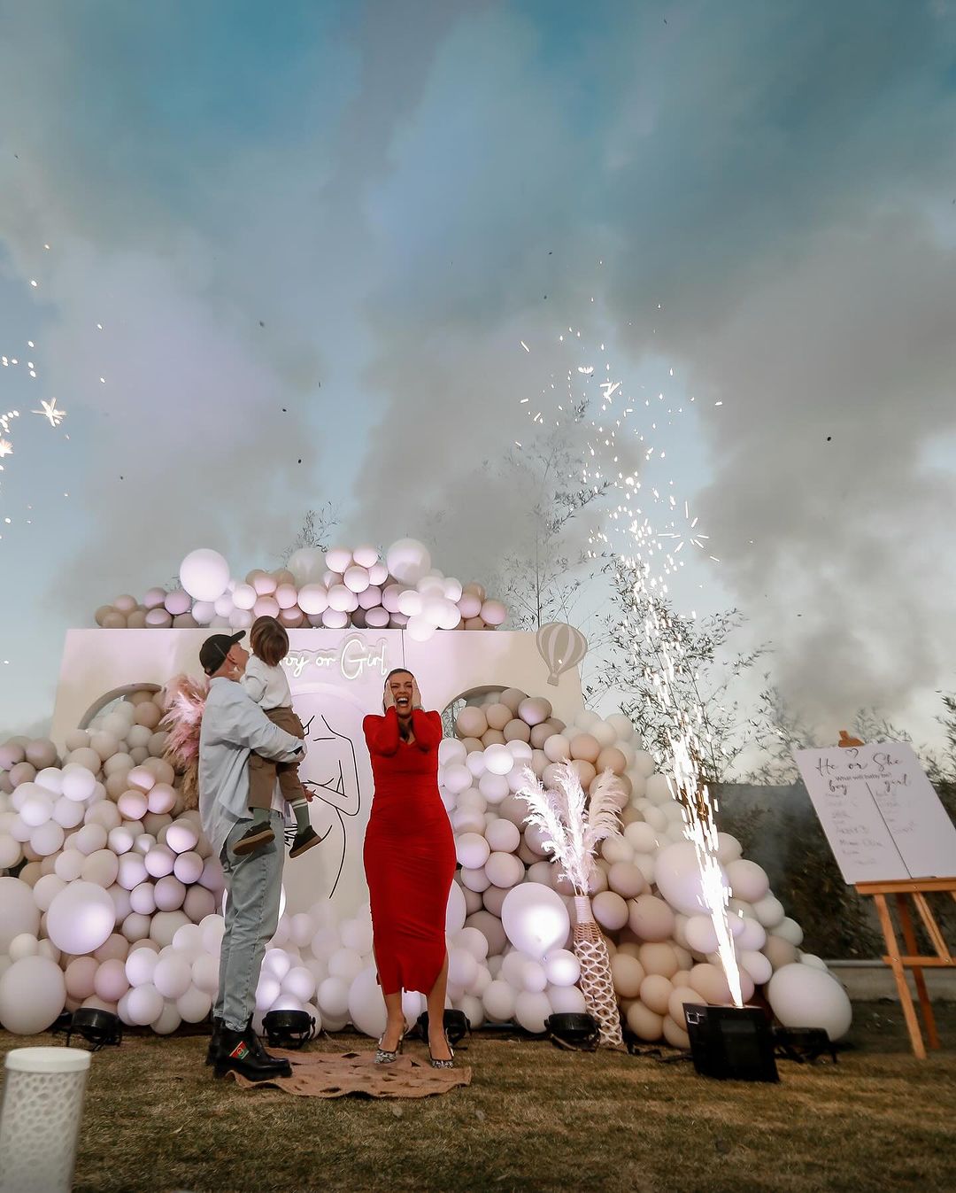 Olta ka organizuar një festë me familjarë dhe miq të ngushtë ku dhe ka zbuluar gjininë e fëmijës, e që është djalë, shkruan “Kosovarja”.