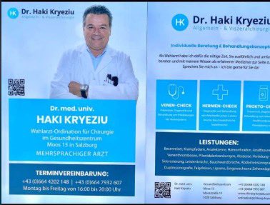 Siç dihet, Dr. Haki Kryeziu është kryemjek i Kirurgjisë në Klinikat Universitare të Salzburgut (SALK) që nga viti 2015 dhe ka hapur një ordinancë private në Salzburg në vitin 2022, ku ofron shërbime si mjek familjar dhe kirurg i viscerale.