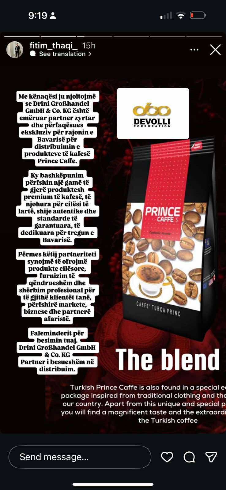Drini Großhandel GmbH & Co. KG është emëruar partner zyrtar dhe përfaqësues ekskluziv për rajonin e Bavarisë për distribuimin e produkteve të kafesë Prince Caffe. Ky hap shënon një bashkëpunim të rëndësishëm në tregun gjerman të kafesë, duke bashkuar përvojën në distribuim me një markë të njohur për cilësinë e saj.