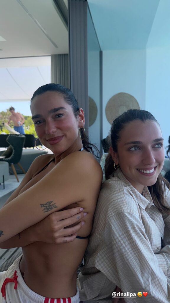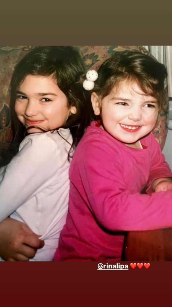 Së pari, Dua shpërndau fotografinë nga fëmijëria, ku shihet shpinë për shpinë me Rinën.