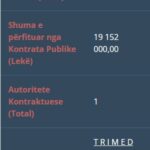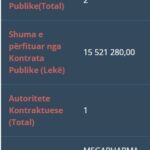 Një tjetër tender i fituar nga “Delta Pharma” në bashkëpunim me MEGAPHARMA & T R I M E D shpk është një kontratë publike me shumë të përfituar nga kontrata prej 105 520 000,00.
