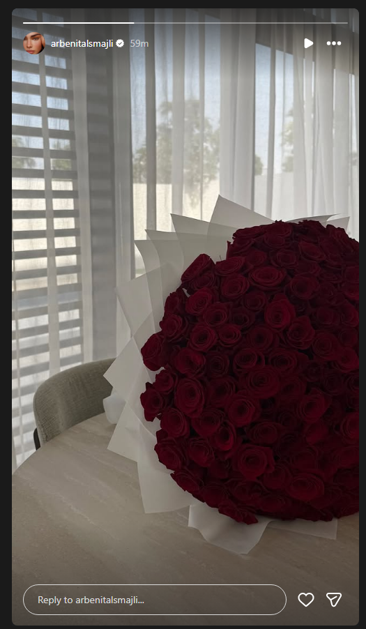 Modelja shqiptare Arbenita Ismajli ka pranuar një buqetë gjigante me trëndafila të kuq.