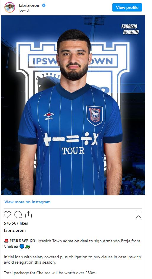 Broja kërkon të marrë sa më shumë minuta, për të kapur formën e duhur, teksa Ipsuiçi duket një mundësi ideale për të. Bëhet fjalë për një huazim 1-vjeçar me të drejtë blerje për 30 milionë paund, në rast se Ipsuin siguron qëndrimin në Premier Ligë. Broja do të udhëtojë për teste mjekësore në 24 orët e ardhshme pasi po përgatiten edhe kontratat mes klubeve.