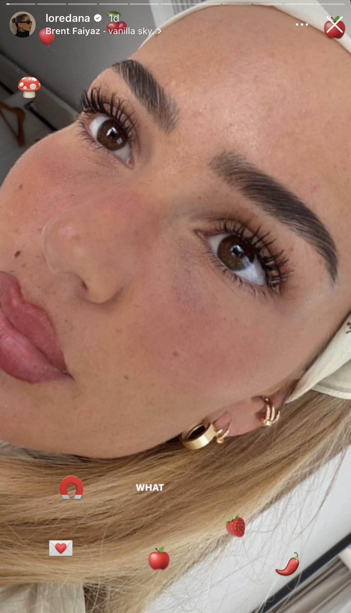 Së fundmi, ajo ka publikuar një fotografi të fytyrës së saj, mbi të cilën ka vendosur disa emoji me fruta dhe perime. Postimi ka tërhequr vëmendje për shkak të simbolikës së paqartë.