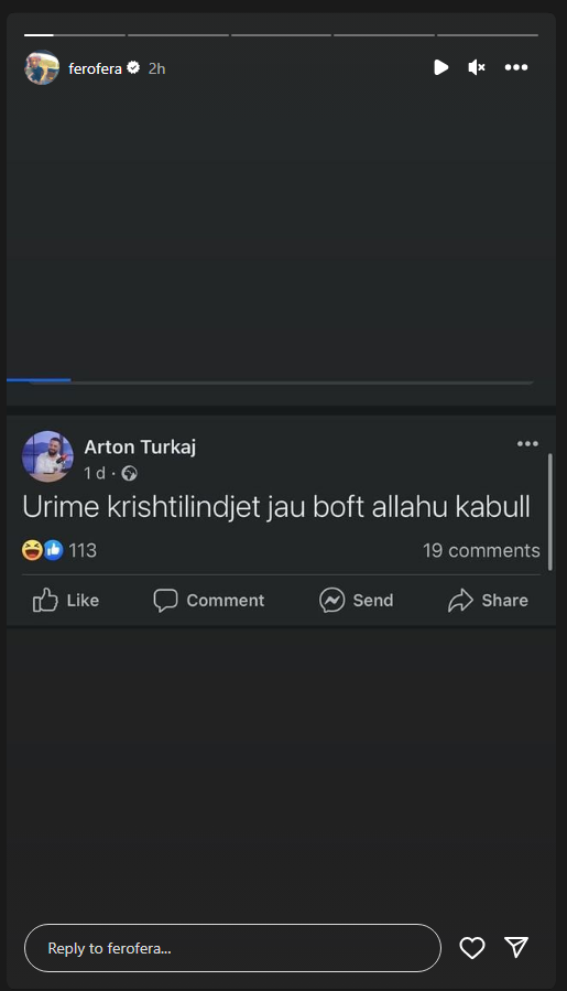 Fero ka shokuar me postimet e fundit në rrjetin social Instagram.