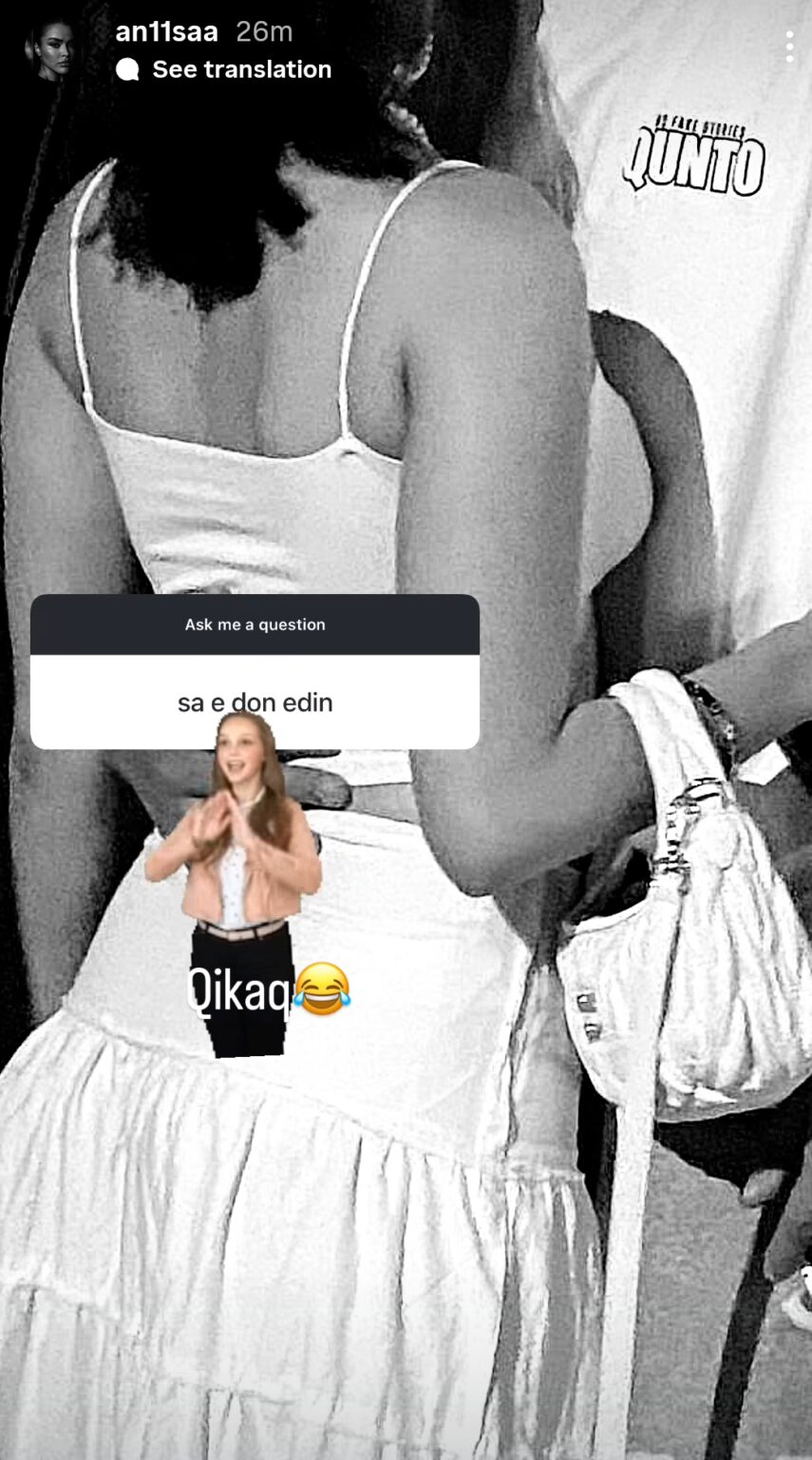 ër më tepër, Anisa ka publikuar një përgjigje pikante në Instagram për fansat që e pyetën se “sa e do Edin”, duke zgjedhur një gif që thotë “Qikaq” me të qeshura, një konfirmim i koduar, por i qartë.