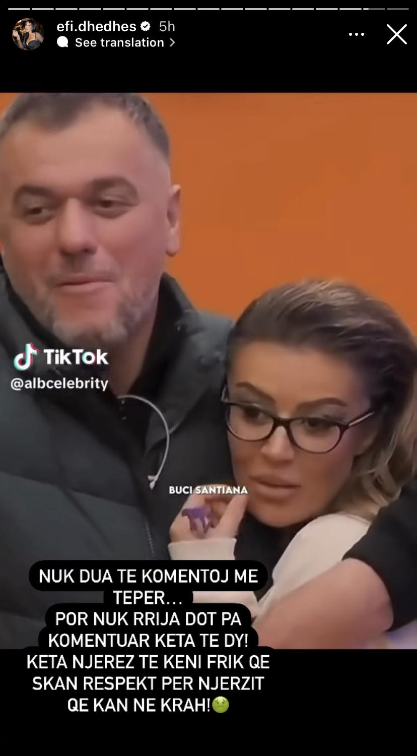 Pas publikimit të një video ku shihet afermiteti i Bucit dhe Sanianes, Efi ka shkruar “Nuk dua te komentoj me tepër… Por nuk rrija dot pa komentuar këta te dy! Këta njerëz te keni frik qe skan respekt për njerëzit qe kanë në krah”.