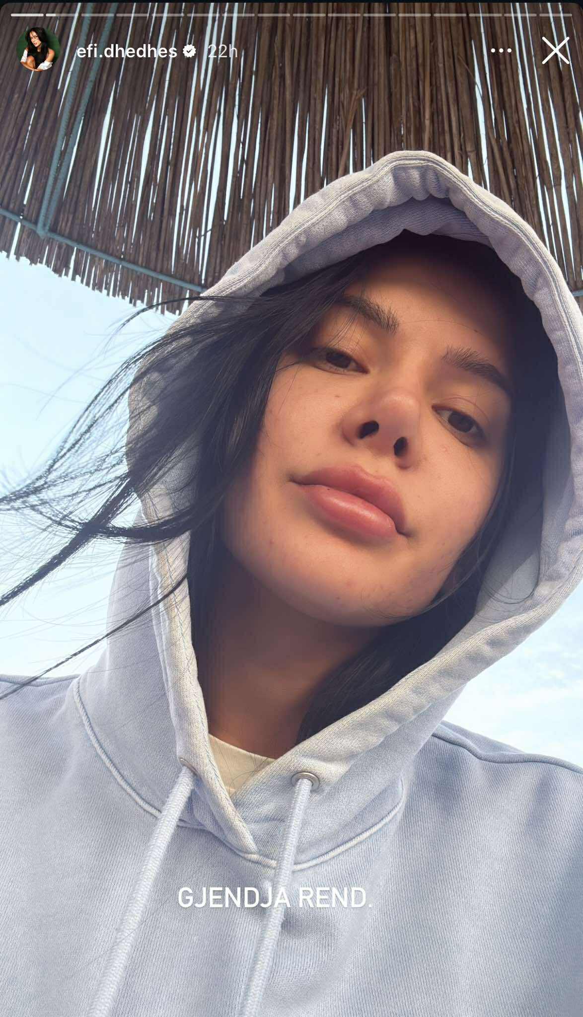 Në një foto të publikuar nga fshati, Efi ka shoqëruar imazhin me përshkrimin “Gjendje e rëndë”, duke lënë të kuptohet se ndodhet në një fazë reflektimi dhe rigjetjeje personale.