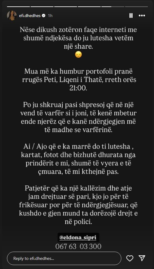 Ajo reagoi që i ka humbur portofoli dhe iu lut ndjekësve që nëse e gjejnë t’ia kthejnë.