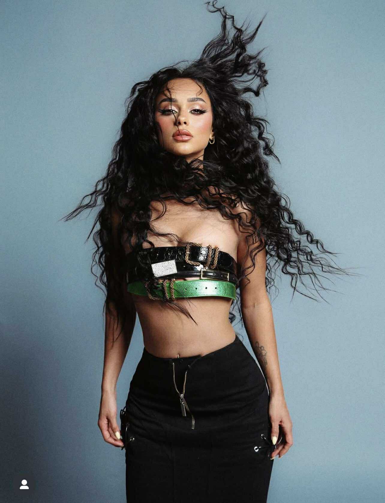 Në fotot e fundit, Egli ka provokuar ndjekësit duke u shfaqur me një stil tejet të guximshëm: disa rripa të lidhur në gjoks.