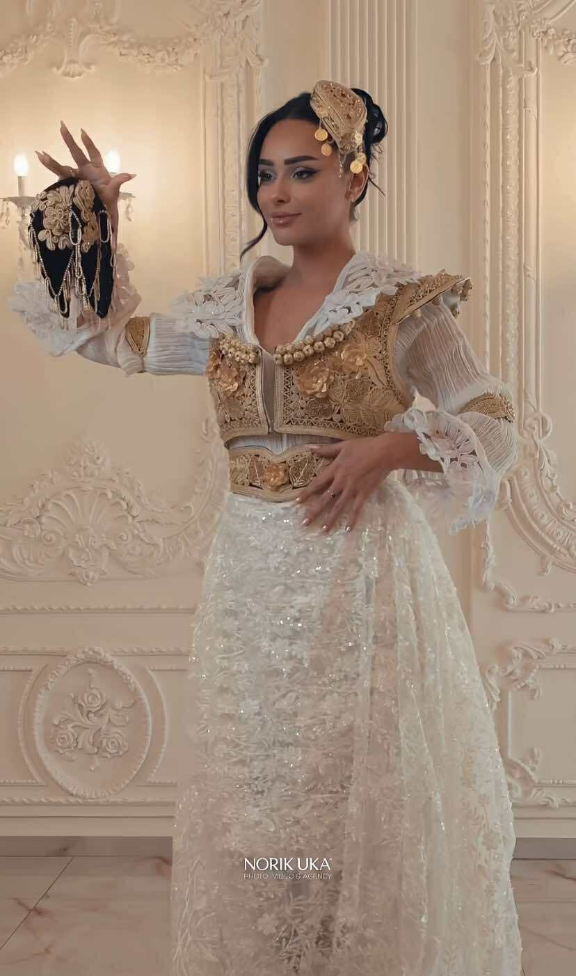 Ajo ka pozuar para kamerës e veshur me kostume tradicionale shqiptare, dimija dhe jelek, duke tërhequr vëmendjen e ndjekësve, shkruan “kosovarja”.
