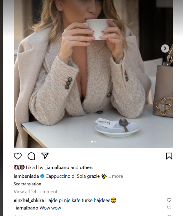 Beniada ka postuar disa imazhe të reja në Instagram, duke shijuar kafen e mëngjesit.
