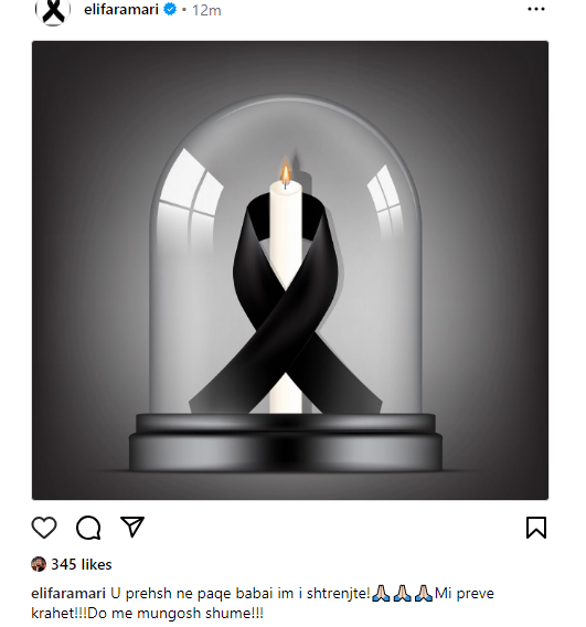 “U prehsh ne paqe babai im i shtrenjte!🙏🏻🙏🏻🙏🏻Mi preve krahet!!!Do me mungosh shume!!!”, ka shkruar Eli në rrjete sociale.