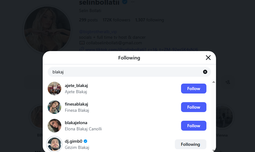 Ata kanë bërë “follow” kunatën ku e njëjta ua ka kthyer me “back”.