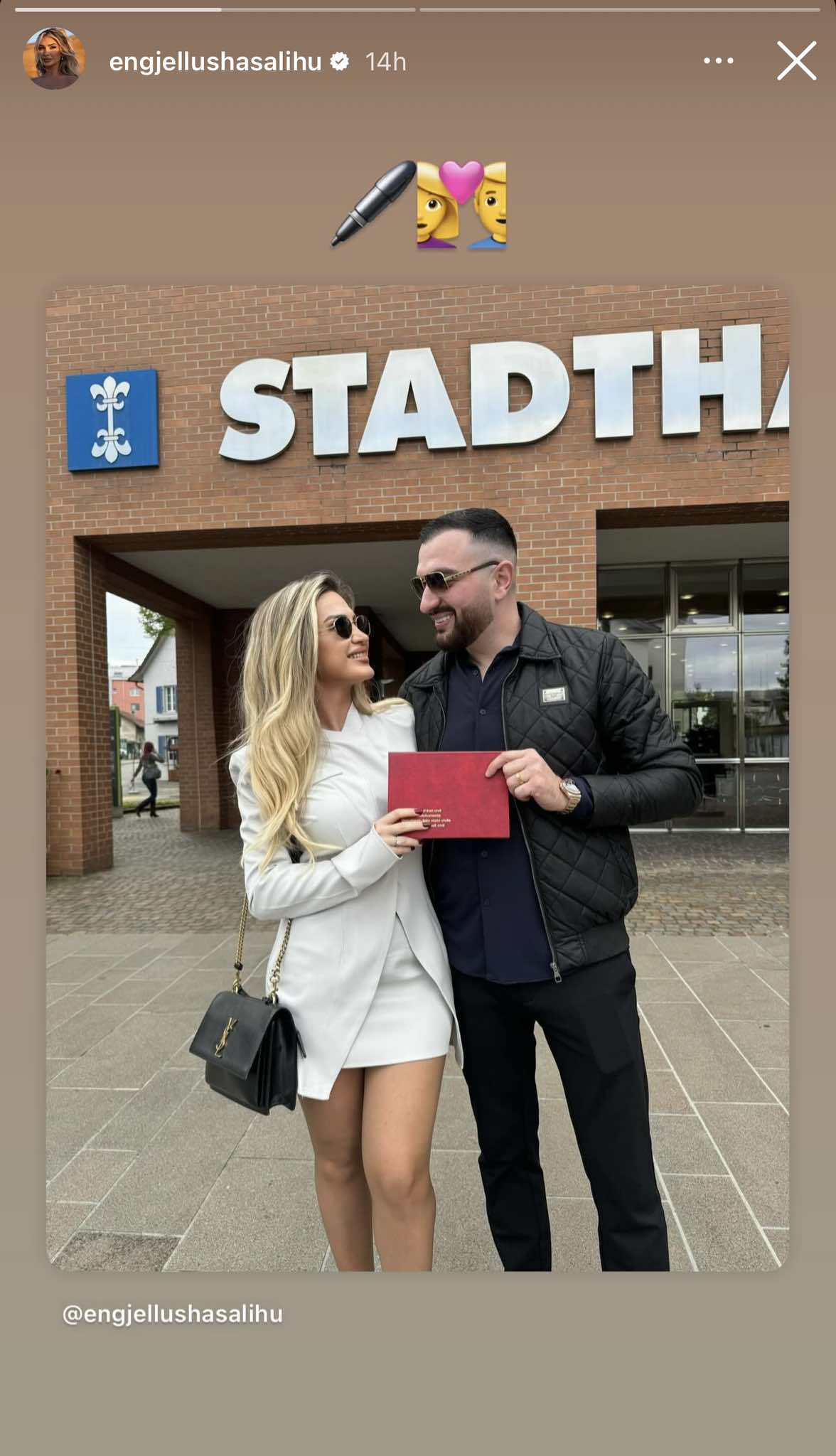 Ajo ka publikuar fotografi me bashkëshortin pas ceremonisë, ku të dy duken mjaftë bukur, shkruan “Kosovarja”.