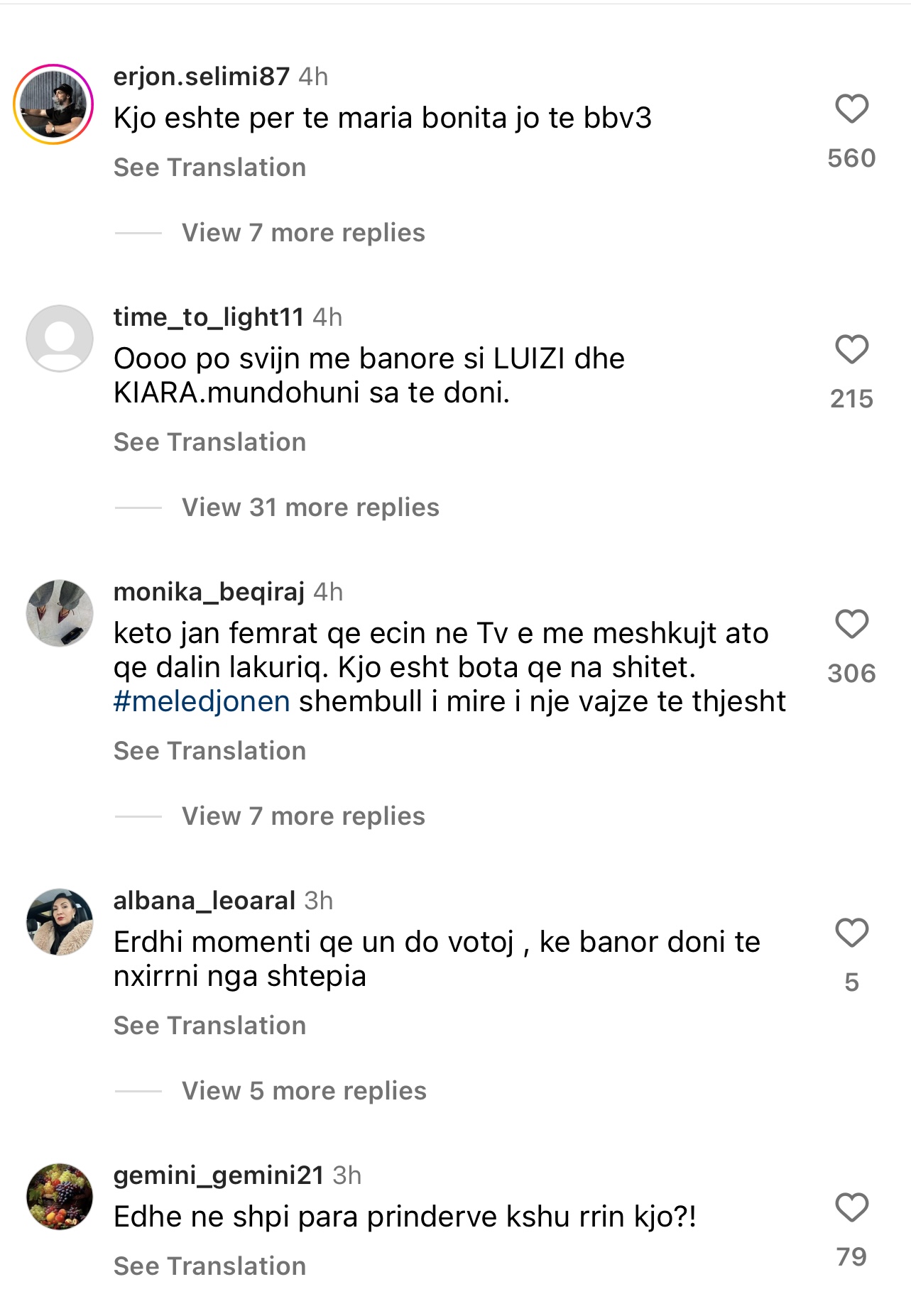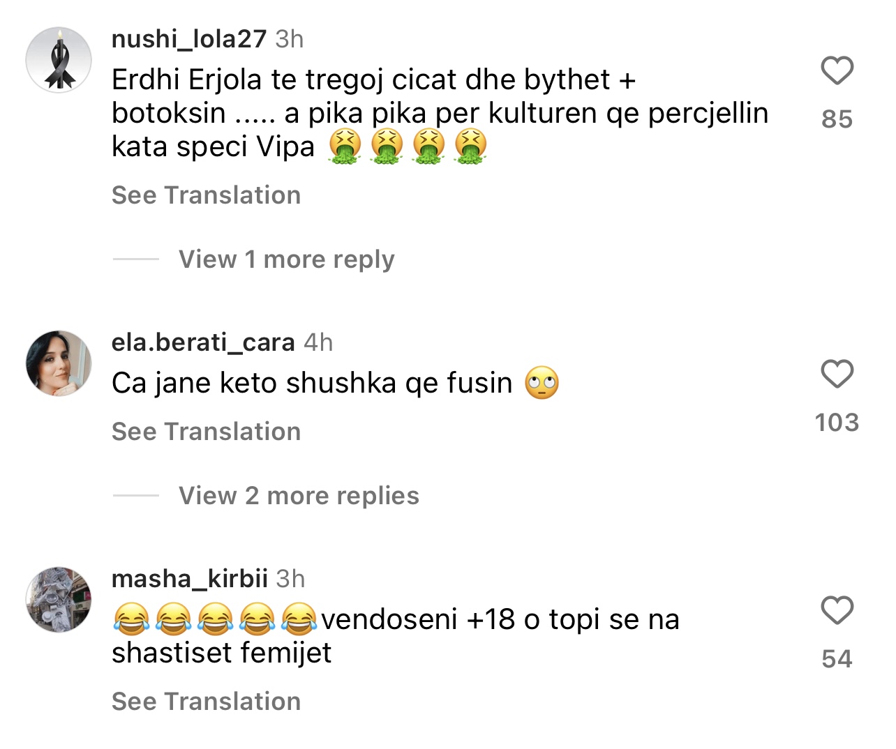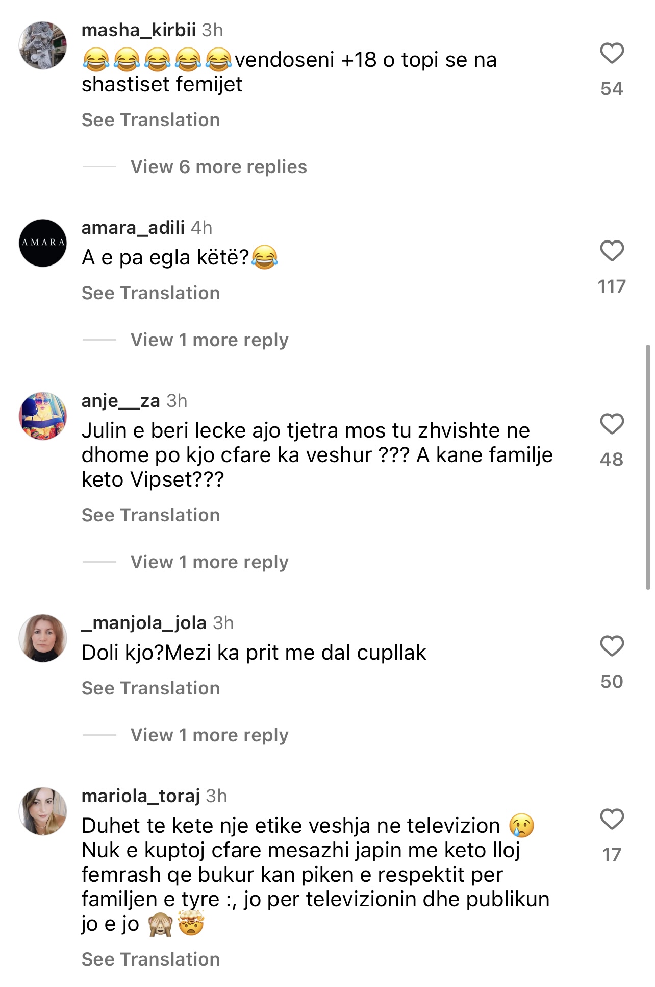 Komentuesit kanë shpërthyer negativisht ndaj saj, duke u shprehur si më poshtë: