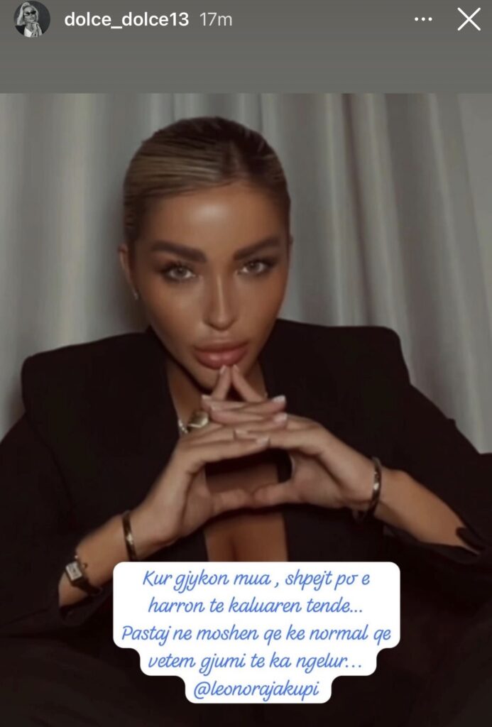 Pas përballjes verbale mes dyshes, ku Leonora u shpreh me tone ironike ndaj Dolces, familjarët e kësaj të fundit kanë reaguar përmes një postimi në rrjetet sociale, duke e cilësuar deklaratën si të panevojshme dhe fyese.