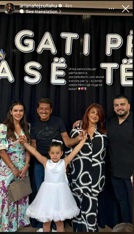 Këtë e ka bërë të ditur nusja e tij Ariana Fejzullahu e cila ka publikuar disa imazhe familjare në përfundimin e parashkollorit të vajzës së saj.