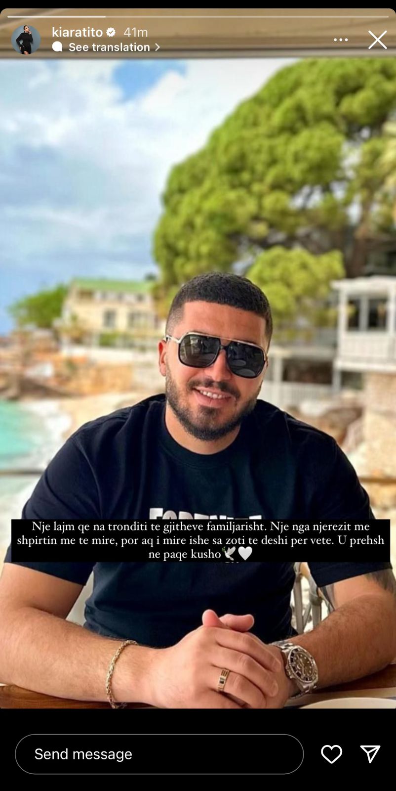 “Një lajm që na tronditi të gjithëve familjarisht. Një nga njerëzit me shpirtin më të mirë, por aq i mirë ishe sa zoti të deshi për vete. U prehsh në paqe kusho”.