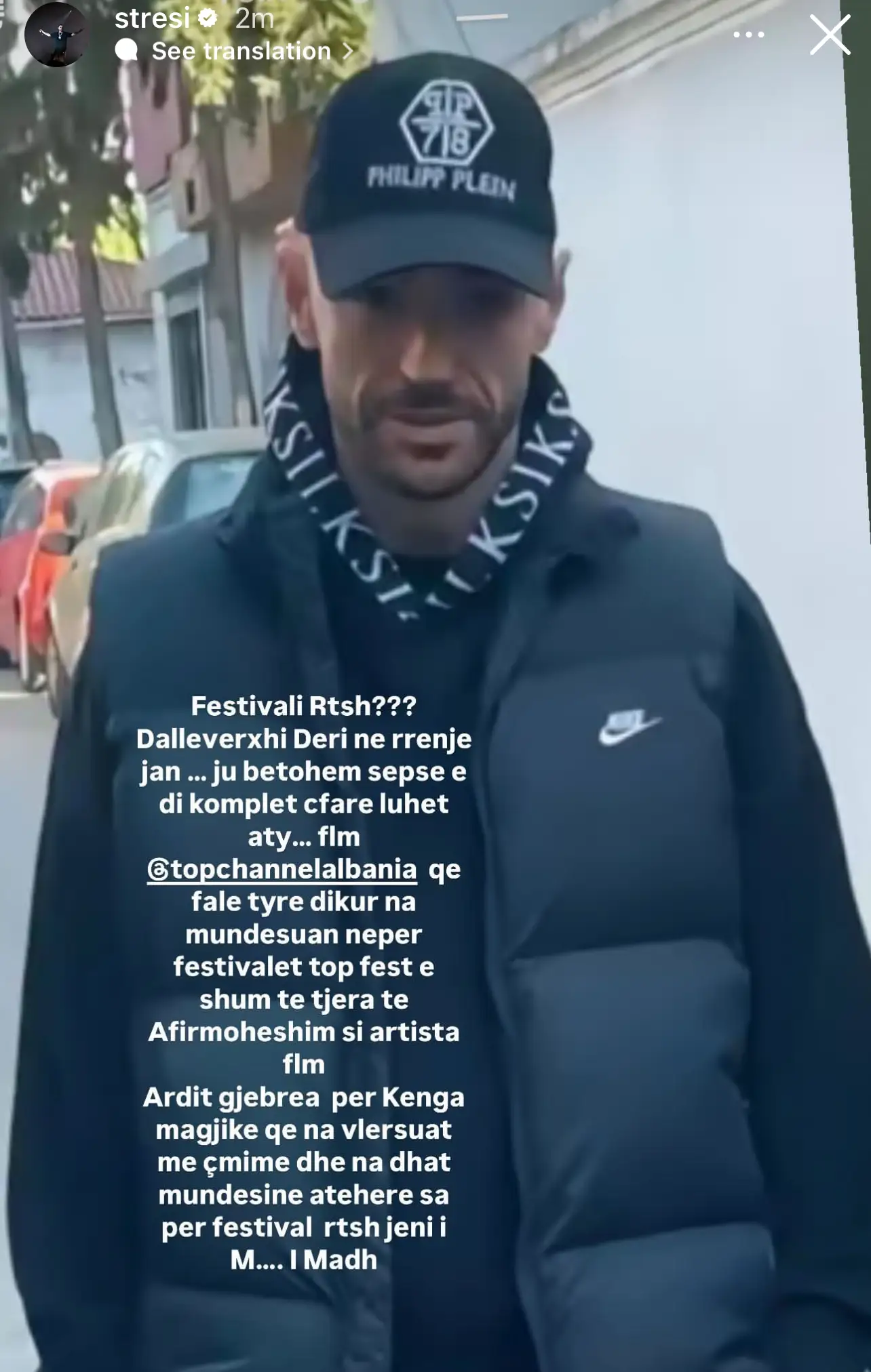 Reperi i njohur, Stresi, ka bërë një postim të drejtpërdrejtë në Instagram ku kritikoi ashpër RTSH-në për organizimin e festivaleve. Në shkrimin e tij, ai e quan institucionin “dallaverxhi deri në rrënjë” dhe thekson se është i njohur me situatën dhe mënyrën se si funksionojnë këto aktivitete.