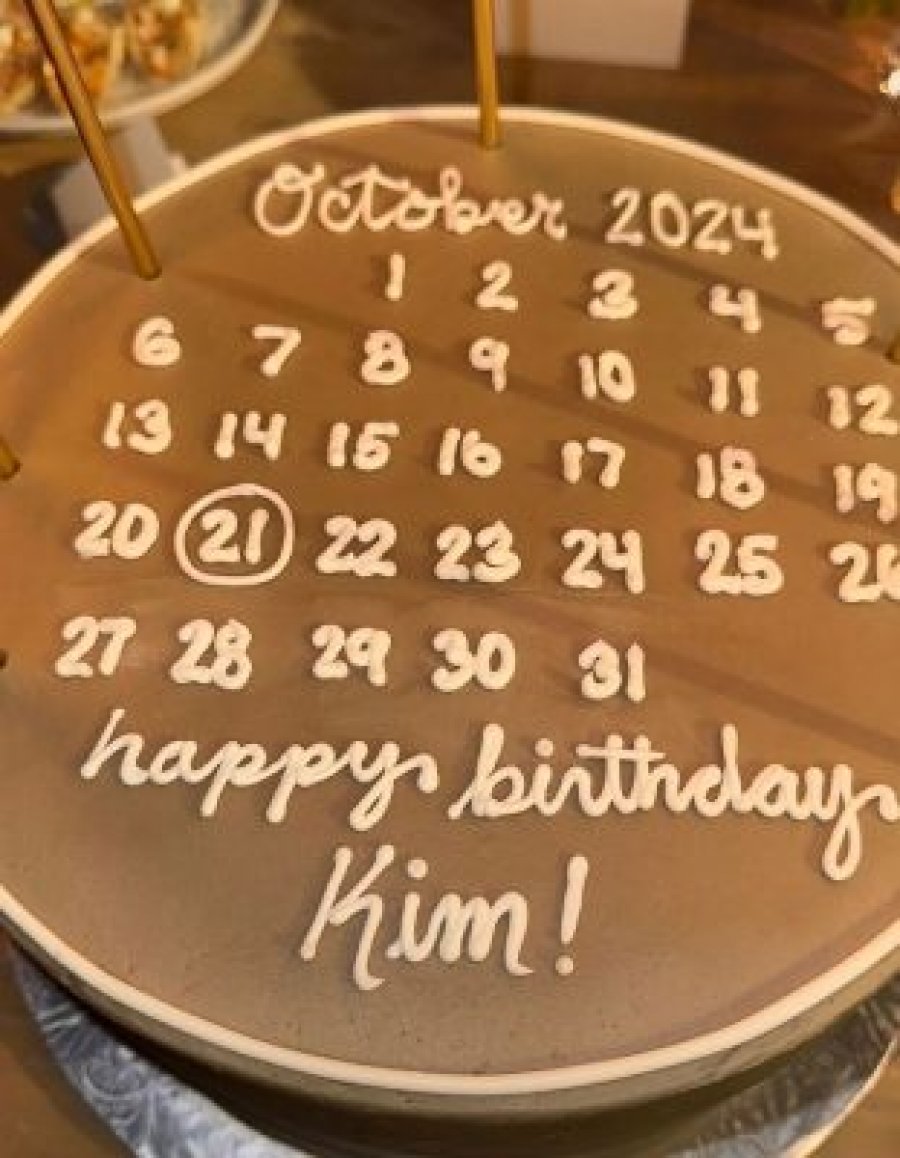 Tortën ajo e zgjodhi gjithashtu në ngjyrën e veshjes, ku mbante të shkruar kalendarit e tetorit të 2024 duke rrethuar me krem ditën e saj të lindjes, 21.