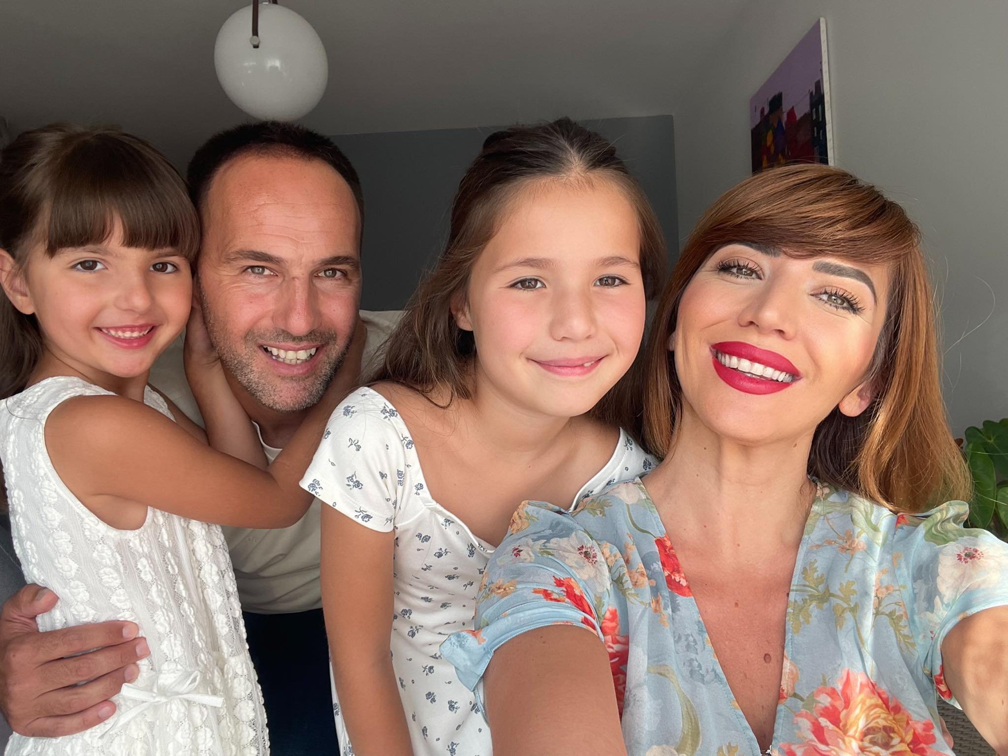 Në një fotografi ku nuk ka nevojë përshkrimi shihet lumturia e saj me familjen e saj.