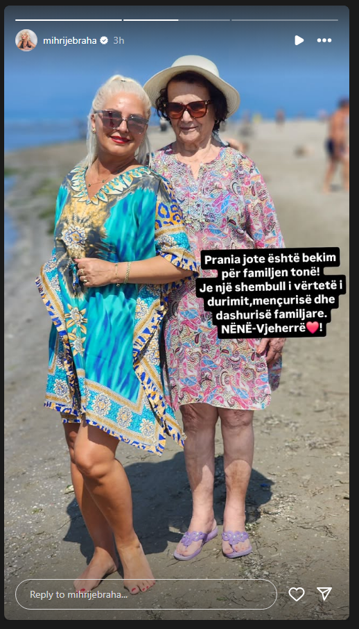 “Prania jote është bekim për familjen tonë. Je një shembull i vërtetë i durimit, mençurisë dhe dashurisë familjare. NËNË- Vjehërr”, shkroi krahas posimit.