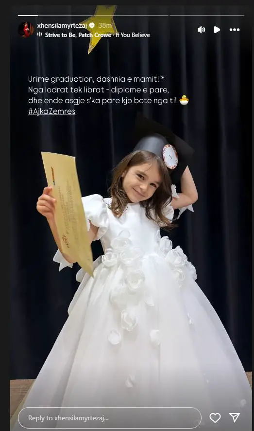 Përmes një foto të publikuar në Instastory”, uroi vajzën e saj, Ajkën me rasti e përfundimit të shkollës.