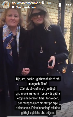 “Dje, sot, nesër – gjithmonë do të më mungosh, Nanë. Zëri yt, përqafimi yt, fjalët që gjithmonë më jepnin forcë – të gjitha jetojnë në zemrën time. Koha ecën, por mungesa jote mbetet po aq e dhimbshme. Faleminderit që më dhe gjithçka që isha dhe që jam.”