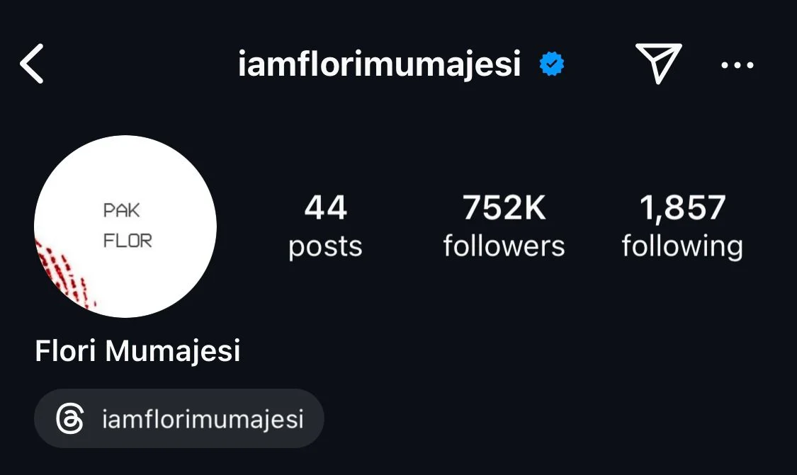 Në faqen e tij zyrtare në Instagram, Flori Mumajesi ka ndryshuar foton e tij të profilit, ku ka vendosur vetëm një shkrim të shkurtër që thotë: “Pak Flor”.