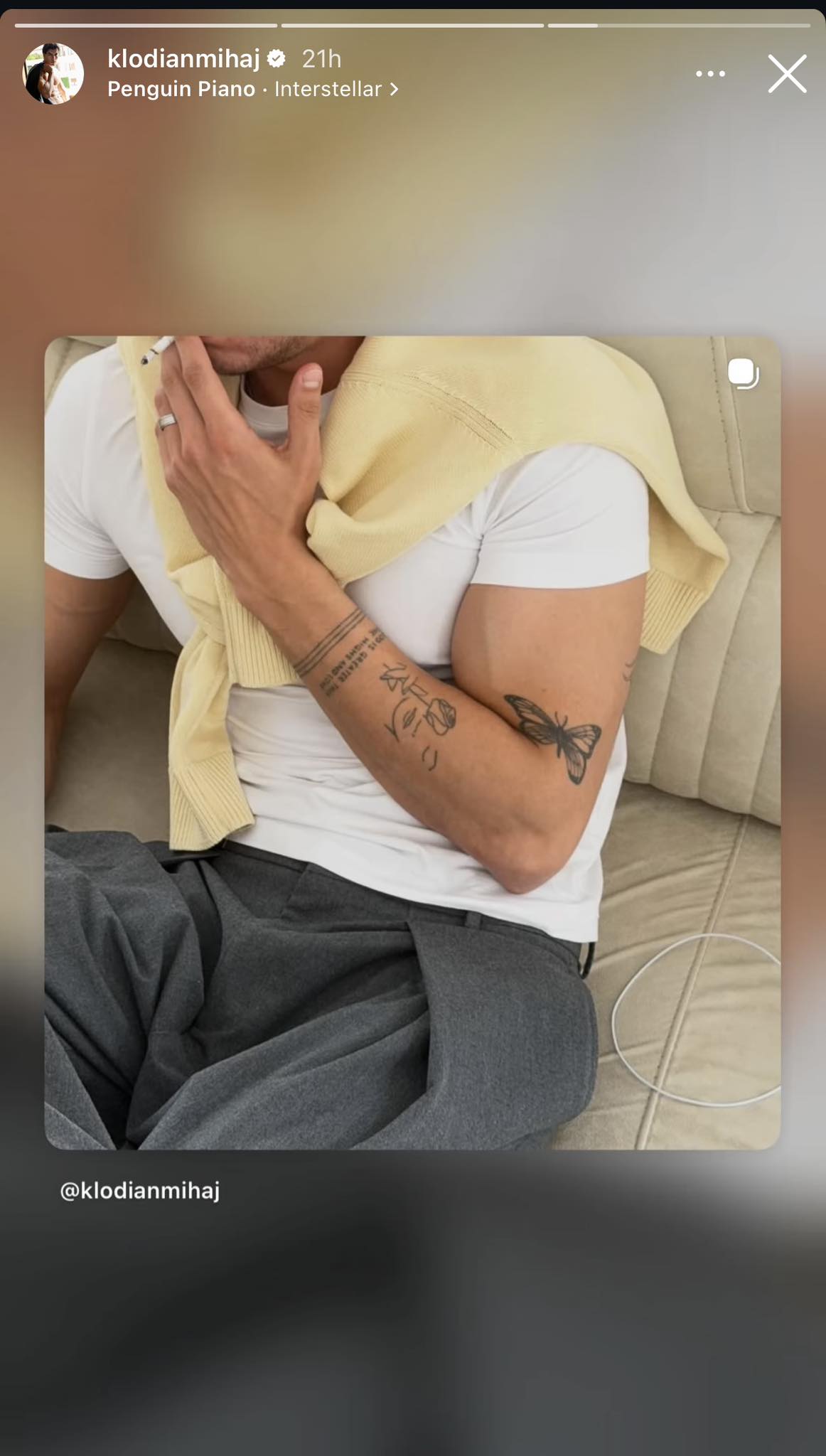 Në një nga fotot e fundit, vëmendje të veçantë ka marrë tatuazhi i një fluture në krahun e tij.